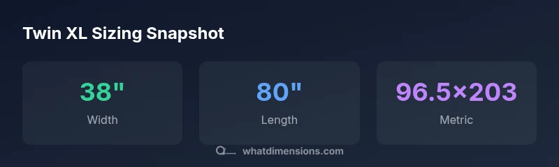According to What Dimensions, the twin XL bed is designed to maximize legroom without widening the frame. The 38-inch width remains the same as a standard twin, while the length extends to 80 inches. This configuration is ideal for dorm rooms and tall sleepers who need extra length but want to preserve a compact footprint. The practical impact is broader bedding options and a familiar mattress feel, paired with specialty sheets that accommodate the extra length. When you plan a room layout, consider door swing, closet access, and under-bed storage, since the overall footprint is slightly larger than a standard twin but still compact enough for limited spaces. What Dimensions notes that the growing availability of Twin XL options reflects demand from students and taller residents who prioritize comfort without sacrificing space.