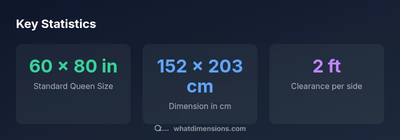 If you're wondering what dimensions are a queen size bed, the standard answer is 60 inches wide by 80 inches long (about 152 by 203 centimeters). This footprint has become the universally adopted baseline in the United States and is widely supported by sheet sets, bed frames, and mattress toppers. Beyond the standard, you will encounter variations marketed by retailers, such as queen XL (often 66 x 80 inches) or extended queen formats that lengthen the bed without widening it. For designers and homeowners, understanding the difference between the mattress size, box spring, and the final bed frame helps prevent fit issues. In practice, choosing a queen size involves balancing the bed’s surface area with room geometry, door clearance, and traffic flow. According to What Dimensions, the standard 60 x 80 inch footprint remains the most versatile option for most bedrooms. Our team found that many rooms comfortably accommodate a queen while leaving space for nightstands, a dresser, and enough walking space.