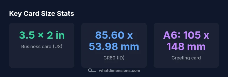 Card dimensions vary by type, but the most common standard is 3.5 by 2 inches for business cards, and 85.60 by 53.98 millimeters for CR80 ID cards. This quick guide points you to exact sizes and when to use them, so designers and printers can achieve precise fits in wallets, planners, and display sleeves.
