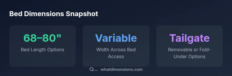 Measuring bed dimensions yourself requires a methodical approach. Start by identifying your cab style, number of family seats, and bed option; these details are typically listed on the window sticker or build sheet. Then measure the bed length from the inside edge of the bulkhead to the inner edge of the tailgate in inches, and note the available tailgate clearance. For width, measure from one inner wheel well to the other, and factor in bed rail thickness and any permanent features such as bed liners. Finally, assess height: floor-to-tailgate distance can impact cargo stacking. When in doubt, rely on official manufacturer specifications rather than estimates from a showroom floor. If you plan to haul specific items, sketch the item to scale and compare it against the measured bed area. What Dimensions recommends taking multiple measurements at different points along the bed to capture any taper or curvature.