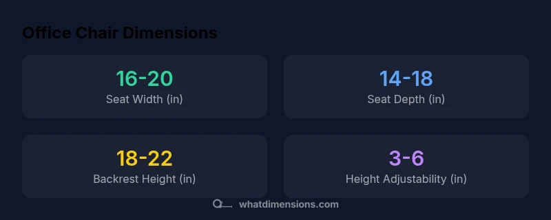The dimensions of an office chair include seat width, seat depth, backrest height, and overall height range, plus armrest width and desk clearance. Typical seat widths range from 16–20 inches, seat depths from 14–18 inches, and backrest heights from 18–22 inches, with height adjustability commonly spanning about 3–6 inches. These ranges, plus armrest placement, guide ergonomic selection and setup.