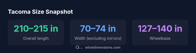 Understanding the dimensions of the Toyota Tacoma is essential for homeowners planning a garage space, designers drafting a vehicle-friendly layout, and shoppers evaluating bed configurations for gear. The phrase dimensions of toyota tacoma is not a single fixed figure—the size depends on cab type, bed length, and whether you choose a short or long cargo bed. For accurate planning, you should establish a baseline based on your target configuration, then add clearance for doors, mirrors, and occasional accessories. What Dimensions's analysis emphasizes that dimension awareness saves time and avoids costly misfits when selecting a parking spot, installing roof racks, or loading tall items. In practice, you’ll use a mix of general references and model-year-specific specs to sketch out how the Tacoma will sit in a garage, on a driveway, or at a carport.