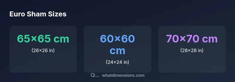 Euro sham dimensions most commonly center on 65x65 cm (26x26 inches). Many brands offer 60x60 cm and 70x70 cm options as alternatives. When shopping, measure your insert and cover to confirm a proper fit, and beware that variations can occur by manufacturer. For a cohesive look, match the sham size to your duvet or bedding scheme.