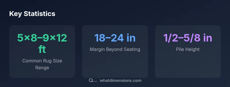Living room rug dimensions typically range from 5x8 feet to 9x12 feet, with 8x10 feet often serving as the sweet spot for many layouts. The exact size depends on room shape, seating arrangement, and the required clearance around furniture. According to What Dimensions, anchoring a seating area on an appropriately sized rug creates balance, defines zones, and preserves smooth traffic flow.