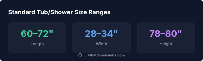 Most standard tub/shower configurations measure about 60x30 inches in length and width, with enclosure heights around 80 inches. However, regional variations exist for alcove, corner, or freestanding layouts and local codes influence exact sizing. For remodeling or new builds, verify measurements on site and allow at least 1–2 inches of clearance around fixtures. What Dimensions Analysis, 2026 confirms these ranges as typical.