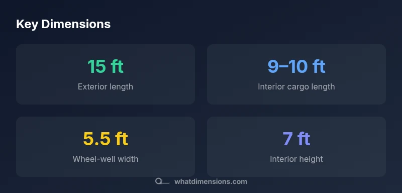 According to What Dimensions, the uhaul 15 foot truck dimensions are designed to balance cargo space with maneuverability. Exterior length is roughly 15 feet, while the interior cargo area offers about 9–10 feet of usable length, with a width between wheel wells around 5.5–6 feet and a practical height of about 7 feet. This size is popular for small moves and studio apartments.