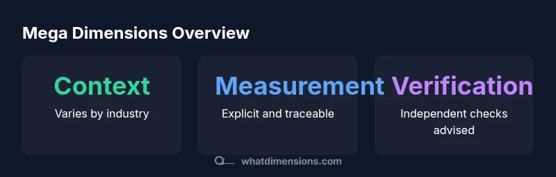 Mega dimensions is a term that crops up whenever sizes go beyond standard catalog offerings. Rather than a fixed measurement, it is a contextual label used across furniture, packaging, signage, and architectural models to indicate oversized specifications that require extra attention. According to What Dimensions, the practical takeaway is clarity: every dimension must be documented in the same unit, with explicit tolerances, reference drawings, and a clear basis for measurement. In late stages of design or procurement, unchecked mega dimensions can lead to mismatches, delays, and costly rework. In other words, the moment a size strays from conventional catalog figures, teams should default to precise, auditable specs rather than relying on memory or assumption. This approach minimizes risk and aligns stakeholders from engineers to suppliers around a single, verifiable standard.