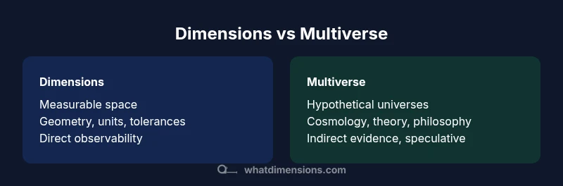 Dimensions are measurable extents used in real-world sizing and design. The multiverse is a theoretical collection of possible universes. In practice, dimensions guide concrete tasks, while the multiverse informs philosophical and speculative discussions.