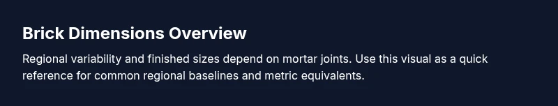 Across regions, brick dimensions vary widely. In the United States, brick units are commonly described by nominal dimensions near eight inches in length and around three and a half inches in height, with a thickness close to two and a quarter inches; however, finished dimensions in practice include mortar joints and can differ by manufacturer. In the United Kingdom and many Commonwealth markets, bricks are frequently specified in millimeters, with commonly used sizes around 215 mm in length and 65 mm in height, with a width near 102.5 mm. These regional standards reflect historical manufacturing practices and local building codes, which is why on-site verification matters for accuracy.
