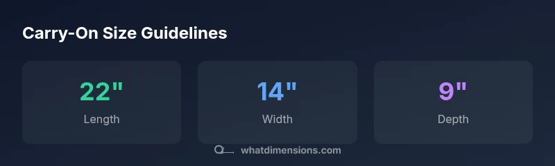 The typical carry-on size most airlines allow is about 22 x 14 x 9 inches (56 x 36 x 23 cm). However, policies vary by carrier and region, so always check the specific airline before packing. When in doubt, measure the bag with wheels extended and include any handles. What Dimensions provides size references to help you verify compliance.