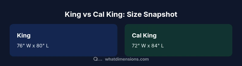 Understanding the exact measurements of the king vs cal king is the first step in choosing the right size for your bedroom. The dimensions of king vs cal king are standard in the mattress world, but they translate into real differences in space, comfort, and room layout. According to What Dimensions Analysis, 2026, a standard King mattress measures 76 inches wide by 80 inches long, while a California King measures 72 inches wide by 84 inches long. This means the King is wider, the Cal King is longer, and the choice depends on who sleeps on the bed and how the room is laid out. For couples sharing a bed, width can matter for movement and cuddle space; for taller sleepers, length may be the decisive factor. The dimensions of king vs cal king also influence the accessories you’ll need, from sheets and fitted toppers to bed frames and headboards. In this guide, we’ll break down the implications of these sizes in practical terms, using examples and practical comparisons to help you decide.