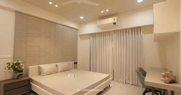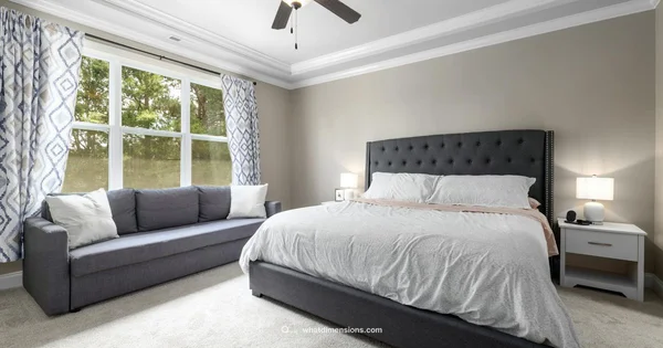 - King: 76 inches wide by 80 inches long (193 cm × 203 cm). Significant footprint; best for master bedrooms with generous space.