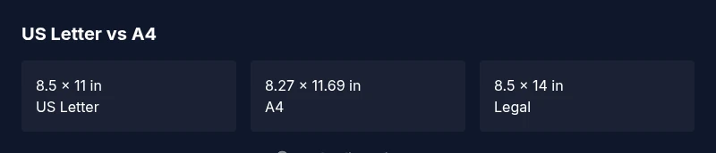 US Letter (8.5 x 11 inches) is slightly wider and shorter than A4 (8.27 x 11.69 inches). The aspect ratio differs, affecting margins and how content scales when converting between formats.