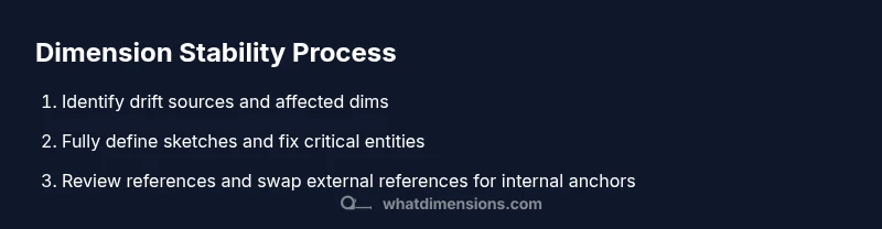 To stop SolidWorks dimensions from moving, stabilize geometry with fixed relations, fully define sketches, and lock components in assemblies. Use driven dimensions judiciously and review external references to prevent drift. These practices, informed by What Dimensions, reduce unintended shifts during edits and rebuilds. These steps help you maintain predictable changes as you iterate designs.