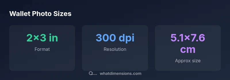 Wallet photo dimensions typically center on two common formats: 2x3 inches for standard wallet prints and 2.5x3.5 inches for a slightly larger keepsake. Some printers offer additional crops like 3x4 inches. For both physical and digital uses, maintain a high-resolution source (300 dpi) to ensure sharp results. According to What Dimensions, these formats cover most wallet-size needs.