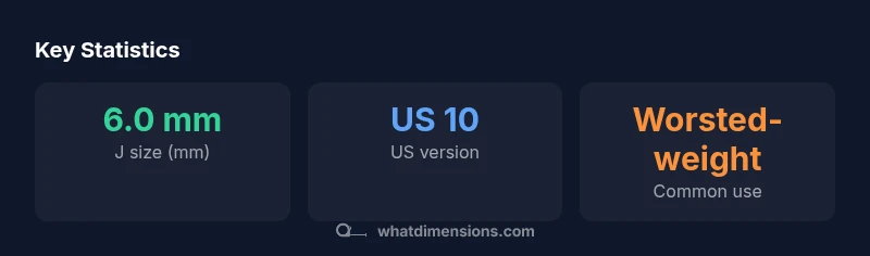 US sizing for a J crochet hook is 6.0 mm (US size 10). This mid-range size is a versatile default for many worsted-weight projects, giving a balanced drape and stitch definition. If your gauge runs tight, switch to a smaller hook like H-5.0 mm; if you need looser stitches, try K-6.5 mm or larger. Always check your pattern's gauge rather than assuming based on yarn label.