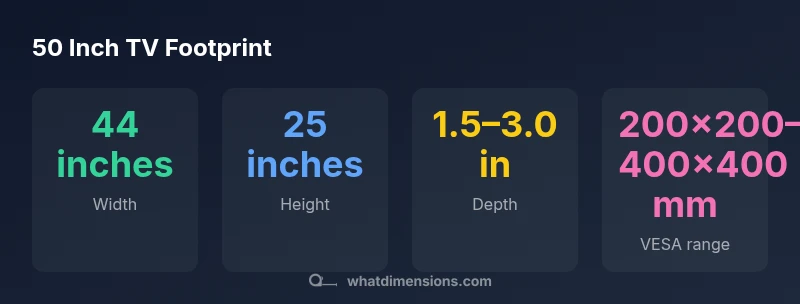 Most 50 inch TVs have a footprint around 44 inches wide and about 25 inches tall, with a depth typically between 2 and 3 inches for slim panels and a bit more with external mounts or soundbars. Exact measurements depend on bezel width, stand design, and mounting pattern, so always check the manufacturer’s spec sheet before buying a stand or TV cabinet. This upfront awareness helps you avoid misfits in furniture and wall setups.